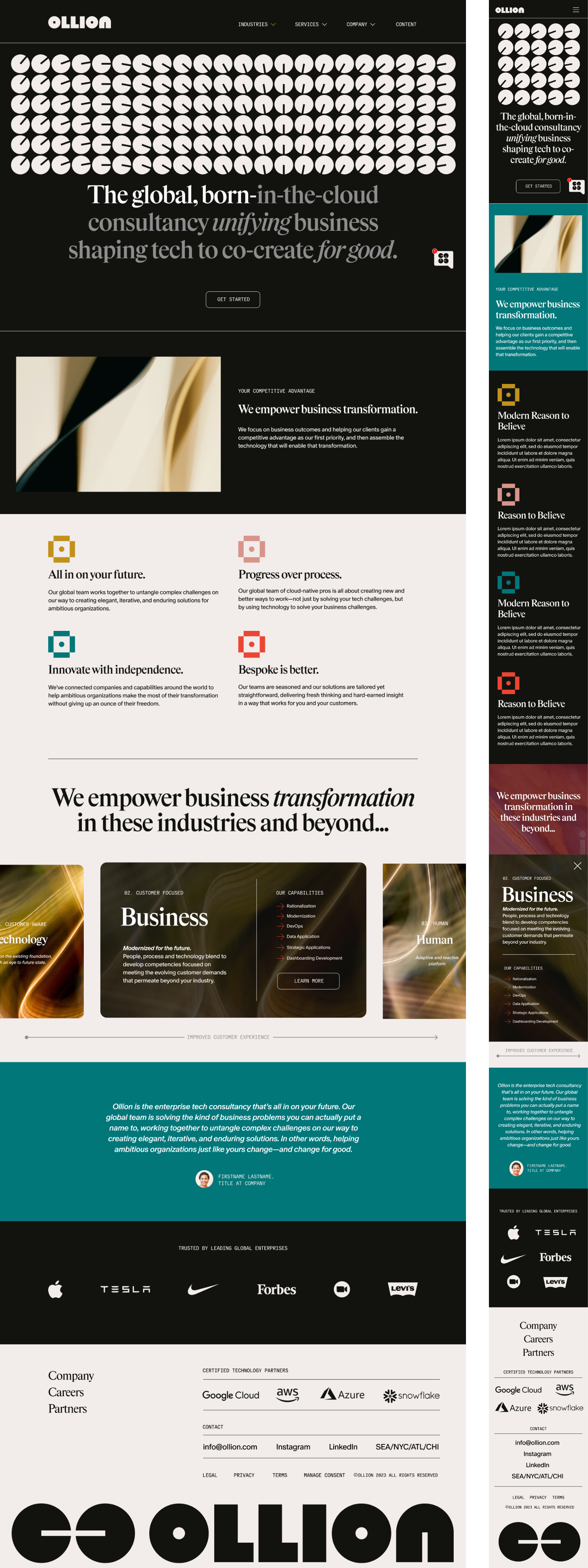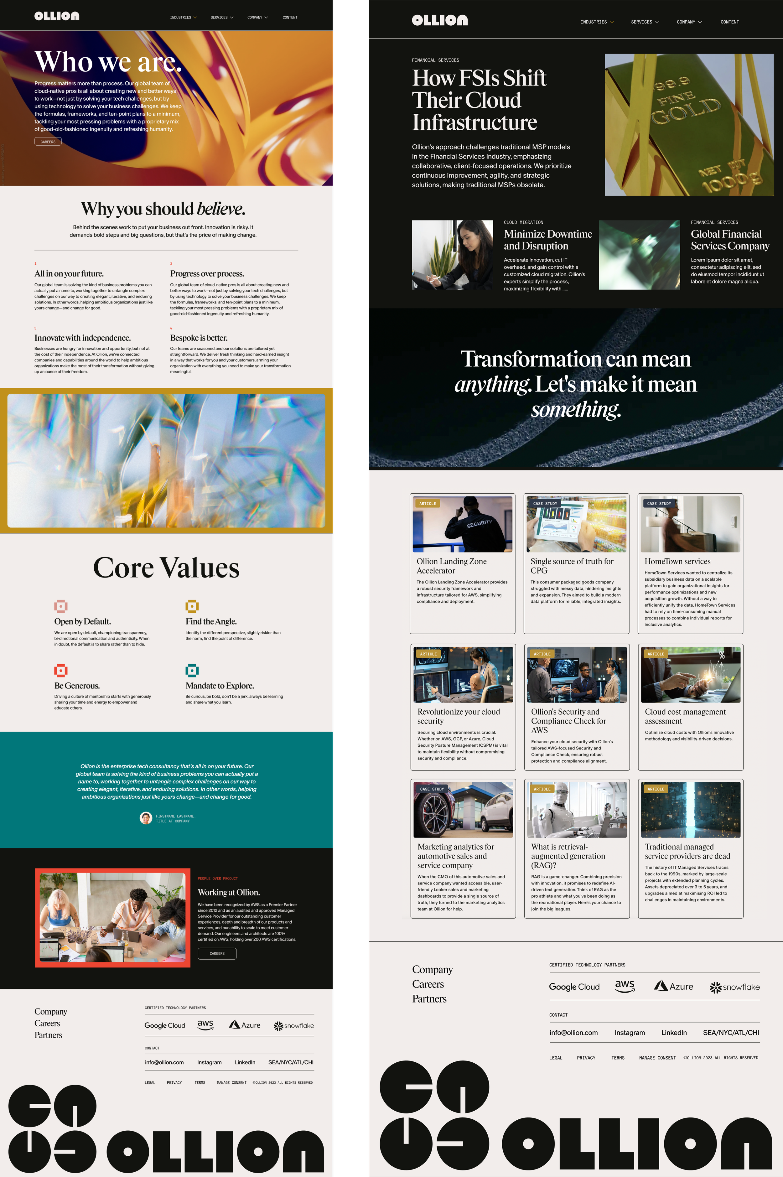 A B2B tech consultancy unlike any other. After Matchstic developed their unique brand identity that positioned them as a disrupter in their industry, we were tasked with building their digital presence. Working closely with both the Matchstic team and client stakeholders, we were able to produce a website that embodied the spirit of Ollion’s new brand.