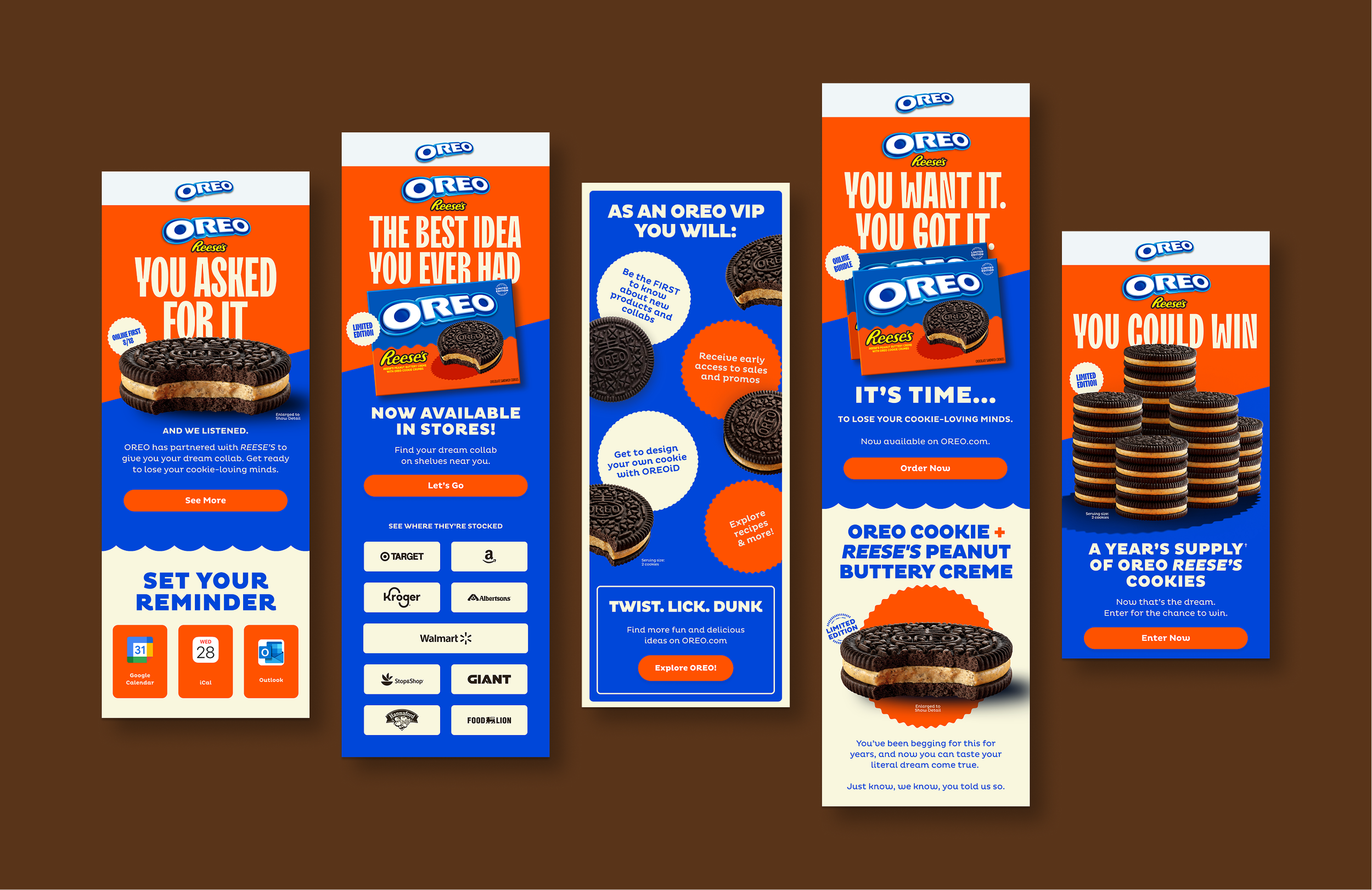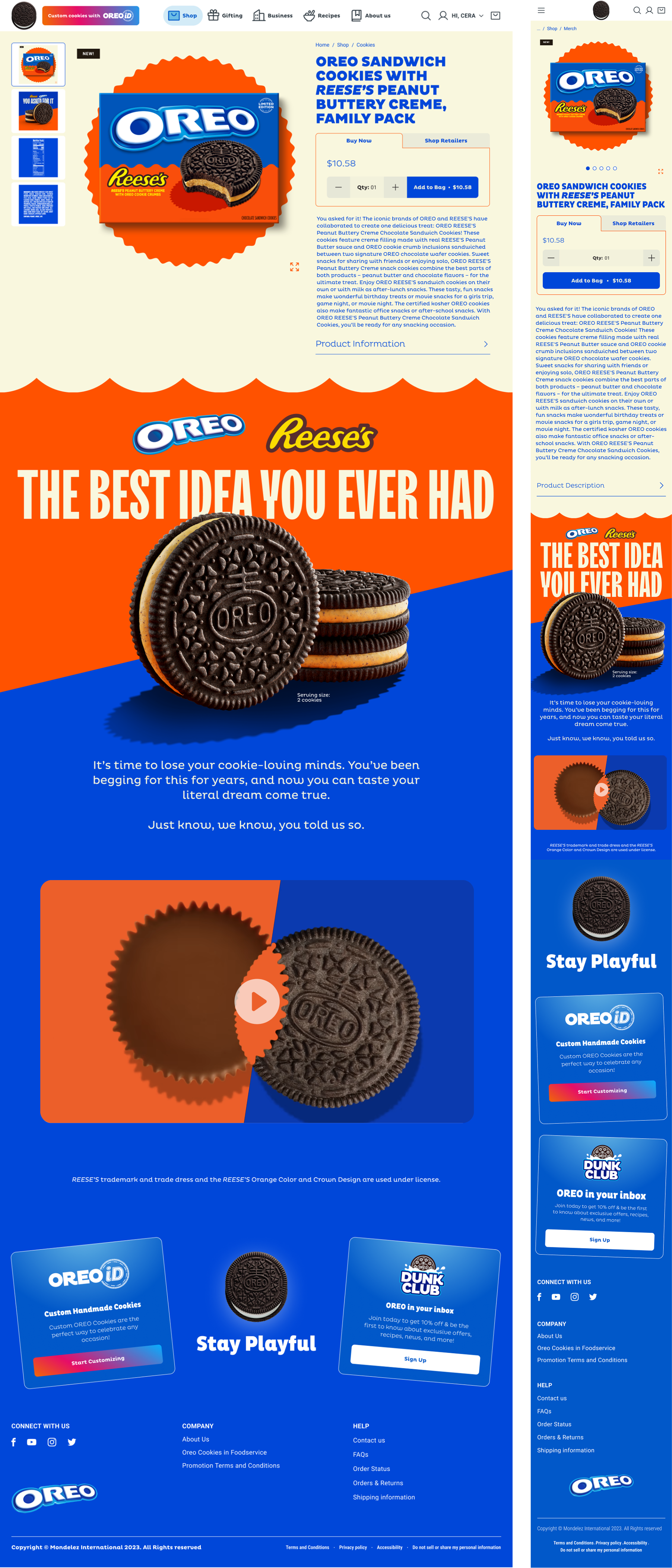 Two snacking powerhouses partnering doesn’t happen every day. We were tasked to create a full digital experience for the Oreo xReese’s collab that spanned web and e-mail marketing. This helped ravenous fans stay excited from the moment the presale announcement dropped to the first bite of their purchase. Assets for this project included a product microsite, reskinned.PDPs, sweepstakes announcement, on-site creative, and a series of email designs.